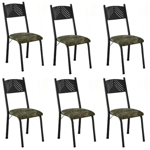 Importante sobre a : A é realizada até a portaria ou porta de entrada do indicado, desde que o acesso seja permitido. Para locais com portaria, a será feita no piso térreo. Não realizamos montagem, desmontagem, por escadas ou içamento. É responsabilidade do cliente verificar se as dimensões do produto são compatíveis com portas, elevadores e corredores. Evite imprevistos: confira todos os detalhes antes de concluir sua compra. MEDIDAS:: [ A ] = 92 cm [ L ] = 34 cm [ P ] = 40 cm | PESO:: 2,36 kg cada | SUPORTA ATÉ:: 120 Kg | MODELO:: Conjunto Com 6 Cadeiras Liz | MARCA:: Artefamol | MATERIAL:: Aço | TECIDO:: Sintético | DENSIDADE DA ESPUMA:: D10 | PÉS:: 4 | POSSUI SAPATAS:: Sim | MATERIAIS DA SAPATA:: Plástico | ITENS INCLUSOS:: 6 Cadeiras | INSTRUÇÕES E CUIDADOS:: Não utilizar produtos abrasivos e esponjas de aço; não molhar; não deixar exposto ao tempo com chuva ou sol; utilizar apenas pano úmido. | GARANTIA:: 3 meses. | AVISO: Importante sobre a : A é realizada até a portaria ou porta de entrada do indicado, desde que o acesso seja permitido. | Altura da cadeira: 92 | Inclui manual de montagem: Sim | Largura do assento: 34 | Profundidade do assento: 40 | Quantidade de cadeiras por conjunto: 6 | Requer montagem: Sim | Cor: Preto/Flor Marca: Não Informado