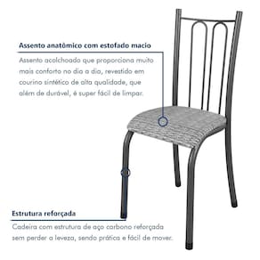 Sim, o aço pintado confere alta resistência e garante maior durabilidade no dia a dia. Ambiente Principal: Sala de Jantar codigo_ean: 7900288270719 Complexidade da Montagem: Baixa: pode ser montado por uma pessoa sozinha Cor: Prata Cor do Produto: Prata Escala de Brilho: Semi-Fosco Itens Inclusos: 6 Cadeiras Marca: PAONANDA DECOR Material Principal: Aço Necessita Montagem: Sim Origem do Produto: Nacional Peso: 4,1 kg Sistema de Montagem: Parafusos Tipo de Encosto: Fixo Marca: Não Informado