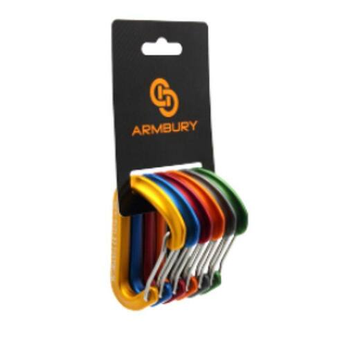 O kit de Mosquetões VIVA da Armbury é um mosquetão simples e pequeno, construído em alumínio e com trava reta de aço inox, também conhecido como gatilho wire ou gatilho de arame.Pesando apenas 28 gramas cada um , estes mosquetões para escalada figuram entre os menores e mais leves do mercado, destinado a utilizações auxiliares e principalmente para montagem de costuras expressas longas, para alguns lugares onde seu uso se faz necessário, ou até mesmo para divisão e distinção de peças e móveisCaracterísticas Técnicas:Material: Alumínio.Sistema de Fechamento: Sem Trava Peso: 38g por peça .Comprimento: 78mm.Lateral: 52mm.Abertura do gatilho: 20mm.Carga de ruptura: 20KN.Ruptura lateral: KN.Ruptura gatilho aberto: 7KN.Certificação Internacional: CE-EN12275-UIAAMarca: Armbury Marca: Armbury