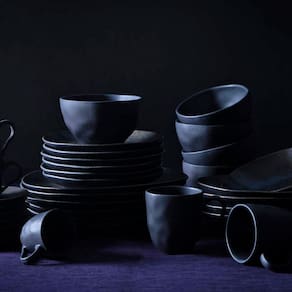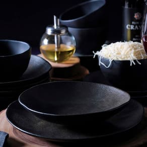 O conjunto Onyx conta com 6 pratos de sobremesa em formato redondo, produzidos em Stoneware, a uma temperatura média de 900°C, oferecendo o acordo primoroso entre o resistente e o maleável.