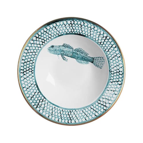 Padrão Riviera: Os pratos são decorados com um padrão que remete à atmosfera descontraída e chique da Riviera, adicionando um toque de elegância à sua mesa.