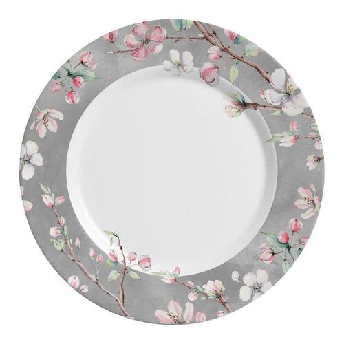 Contendo 6 pratos de sobremesa com 29 cm de diâmetro.
