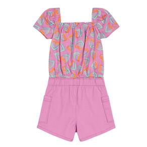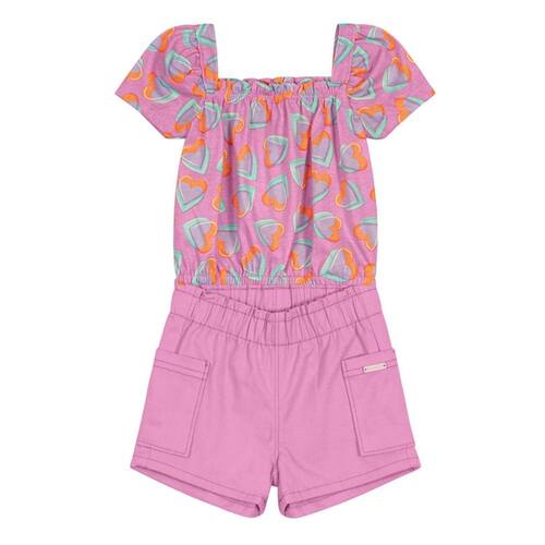 Conjunto infantil menina Brandili composto por blusa cropped e shorts. A blusa confeccionada em malha, possui estampa rotativa, mangas curtas, elástico na barra e no decote, já o shorts confeccionado em sarja comfort conta com bolsos laterais e elástico no cós que facilita na hora de vestir. Invista nesse look super fofo para a pequena arrasar em qualquer lugar!