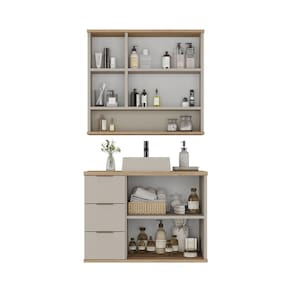 O conjunto perfeito para quem deseja unir estilo, praticidade e conforto no banheiro. Produzido em MDF de 18mm com fita de borda em PVC, ele combina design moderno e resistência para o seu dia a dia. O gabinete com fechamento suave nas portas traz praticidade e conforto, enquanto a espelheira com nichos organizadores garante mais espaço e elegância para o ambiente. Uma escolha completa para deixar seu banheiro lindo, organizado e funcional.
