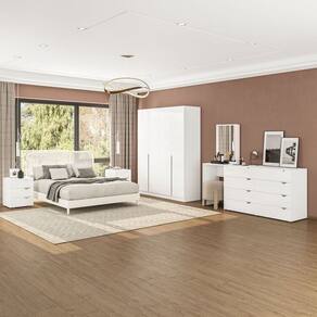 O Conjunto Porto na cor Branca é a escolha perfeita para transformar seu quarto em um espaço sofisticado e funcional. Com puxadores embutidos, que trazem modernidade e elegância, e acabamento em pintura UV, que garante resistência e durabilidade, ele une design e praticidade em cada peça. O guarda-roupa de 4 portas, com 161,1 cm de largura, 46 cm de profundidade e 200 cm de altura, oferece excelente espaço interno. A cômoda penteadeira, com 209 cm de largura, 160 cm de altura e 46 cm de profundidade, combina organização e charme para seus cuidados pessoais. Já as mesas de cabeceira, cada uma com 40 cm de largura, 54 cm de altura e 46 cm de profundidade, são práticas e essenciais. Tudo em um só conjunto para realizar o quarto completo dos seus sonhos. Possui Rodízio: Não Altura do Conjunto: 200 cm Ambiente: null Ambiente Principal: Quarto Cor: Branco Informação Complementar: 1x Guarda-roupa Casal 4 Portas 4 Gavetas Porto Branco Largura: 161,1 cm Altura: 200 cm Peso: 117,95 kg Profundidade: 46 cm Necessita Montagem: Sim