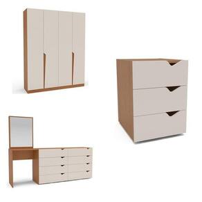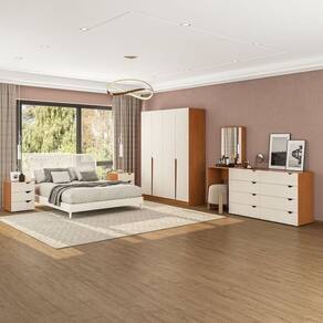 O Conjunto Porto na cor Creme/Freijó é a escolha ideal para transformar seu quarto em um ambiente sofisticado e acolhedor. Com puxadores embutidos, que garantem modernidade e elegância, e acabamento em pintura UV, que proporciona resistência e durabilidade, ele une design e funcionalidade em cada detalhe. O guarda-roupa de 4 portas, com 161,1 cm de largura, 46 cm de profundidade e 200 cm de altura, oferece amplo espaço para roupas e acessórios. A cômoda penteadeira, com 209 cm de largura, 160 cm de altura e 46 cm de profundidade, traz organização e charme para seu dia a dia. Já as mesas de cabeceira, cada uma com 40 cm de largura, 54 cm de altura e 46 cm de profundidade, completam o conjunto com praticidade. Tudo em um só investimento para realizar o quarto completo dos seus sonhos. Possui Rodízio: Não Altura do Conjunto: 200 cm Ambiente: null Ambiente Principal: Quarto Cor: Creme/Freijó Informação Complementar: 1x Guarda Roupas 4 Portas 4 Gavetas Porto Freijo/Creme Largura: 161,1 cm Altura: 200 cm Peso: 117,95 kg Profundidade: 46 cm Necessita Montagem: Sim