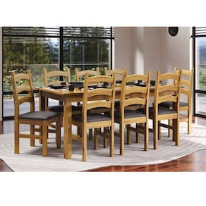 8 Cadeiras com Assento Estofado Medida da Mesa (A x L x P): 78,50 x 180 x 90 Peso da Mesa: 30,12 kg Mesa suporta até: 120 kg Acabamento da Cadeira/Banco: Pintura UV Acabamento da Mesa: Pintura UV Acompanha Manual de Instalação: Sim Almofada do assento: Fixa Ambiente Principal: Sala de Jantar Cadeira/Banco Estofada: Somente Assento Estofado Cadeira/Banco estofada: Somente Assento Estofado Cadeira/Banco suporta até: 90 kg Cadeira/Banco Suporta Até: 90.0000 codigo_ean: 7900288286895 Complexidade da Montagem: Baixa: pode ser montado por uma pessoa sozinha Configuração do Conjunto: Mesa com Cadeiras Cor: Nogueira/Cinza Cor do Produto: Nogueira/Cinza Cor Secundária: Marrom De Canto (Canto Alemão): Não Design da Base: 4 Pés Escala de Brilho: Semi-Brilho Espessura do Tampo: 25 mm Estrutura do Assento: Madeira Maciça Formato do Tampo: Retangular Informações Complementares: Possui cantos arredondados e acabamentos com Pintura UV e Verniz Acetinado Atóxico. Encostos das cadeiras no estilo ripado em peças angulares torneadas, aumentando a estabilidade e conforto. Itens Inclusos: 1 Mesa, 8 Cadeiras, Kit Ferragens e Manual de Montagem Linha ou Coleção: Napoli Manual de Montagem e Instalação: https://product-hub-prd.madeiramadeira.com.br/340603039/documents/e92f1e5e-19c9-4510-a89a-66db9fe571b4f3264760634117598587646515.pdf Marca: Espresso Móveis Material da Base da Mesa: Madeira Maciça Material da Estrutura da Cadeira: Madeira Maciça Material do Tampo: Madeira Maciça Material Principal: Madeira Maciça Medida da Cadeira/Banco (A x L x P): 99 x 40 x 44 Medida do Tampo (L x C x E): 180 x 90 x 2,5 Mesa Extensível: Não Necessita Montagem: Sim Origem do Produto: Nacional Peso da Cadeira/Banco: 5,52 kg Possui Apoio para Braços: Não Possui Apoio Para os Pés: Não Possui Vidro: Não Quantidade de Cadeiras: 8 Quantidade de Lugares: 08 Recomendações de Uso, Manutenção e Limpeza: Limpar com flanela ou pano macio seco, não utilizar produtos abrasivos, desengordurantes, álcool ou solvente. Sistema de Montagem: Parafuso, cavilha e cola. Tipo de Madeira Maciça da Base da Mesa: Pinus Tipo de Madeira Maciça do Tampo: Pinus