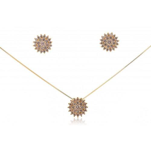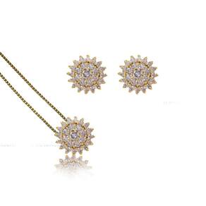 Esse conjunto com pingente e brincos pontiagudos é um acessório moderno e exclusivo. Uma peça folheada em ouro 18k que não poderia faltar em sua coleção pessoal de joias. O Brinco em combinação com o colar eleva seu astral e mantém você linda, em qualquer ocasião, um acessório estético perfeito para todos momentos do seu dia a dia. Seu componente zircônia realça o contraste com a pele, o que evidência o uso da peça, atraindo elogios e olhares por onde passe.