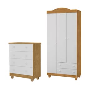 Tipo: Conjunto roupeiro e cômoda Modelo: Lara Cor: Nature/Branco