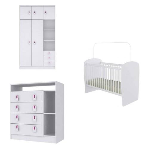 O conjunto Suspiro é composto por uma linda cômoda com nichos e roupeiro com nichos e maleiro, além do berço que possui regulagem de altura no estrado. O quarto do seu bebe ficará ainda mais incrível com estes móveis. Acompanha Colchão: Não Altura do Conjunto: 210 cm Ambiente: Quarto de Bebê Ambiente Principal: Quarto de Bebê Cor: Branco Estrado com Regulagem de Altura: Sim Informação Complementar: 1x Guarda-Roupa de Bebê 5 Portas 3 Gavetas Baby Flex Color Branco Largura: 110,7 cm Altura: 210 cm Peso: 76,5 kg Profundidade: 45 cm Necessita Montagem: Sim