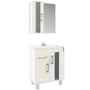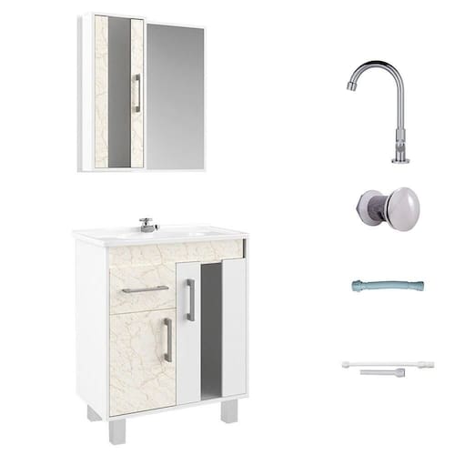 MDFConjunto Completo de Banheiro São João Lisboa 3 peças, Volakas e Branco, 60 cm