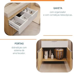 O CONJUNTO é composto por ARMÁRIO ESPELHO LAVATÓRIO. ARMÁRIO fabricado em MDP PF (15mm), com ripas AUTÊNTICAS de HDF BP (06mm), na largura de 20mm. Puxadores em alumínio anodizado, gaveta com divisor e higiênico organizador dental (removível e lavável), corrediças telescópicas e portas com dobradiças slow, ou seja, com sistema amortecedor. LAVATÓRIO fabricado em porcelanato técnico polido, com baixíssima absorção de umidade, resistente a riscos e manchas. Possui frontão frontal e frontão lateral. Cuba esculpida em porcelanato. Acompanha VÁLVULA na cuba, para escoamento d'água. ESPELHO lapidado, estruturado em painel com ripas de HDF BP (06mm). Acompanha parafusos buchas de nylon para fixação na parede. Não acompanha torneira. Possui manual de instalação. Acabamento da Gaveta: BP Acabamento da Porta: Acetinado Acompanha Cuba: Não Acompanha Manual de Instalação: Sim Acompanha Parafusos Para Fixação Na Parede: Sim Acompanha Tampo: Não Altura do Espelho: 80 cm Ambiente Principal: Banheiro codigo_ean: 7909903931523 Cor: Bege Cor do Produto: Bege Cor Interna: Bege Escala de Brilho: Acetinado Espessura do Espelho: 3 mm Formato do Espelho: Retangular Furação para Cuba e Torneira: Sim Gaveta com Chave: Não Informações Complementares: Produto sai montado de fábrica, devidamente regulado, bastando apenas fixá-lo na parede. Itens Inclusos: 01 Gabinete; 01 Lavatório; e 01 Espelho Largura do Espelho: 60 cm Linha ou Coleção: Ripy Manual de Montagem e Instalação: https://product-hub-prd.madeiramadeira.com.br/949253/documents/1f255d8c-fbc7-4ee4-9905-3599eb2da8742361110348617268416652204.pdf Material da Gaveta: MDF/MDP Material da Porta: MDF/MDP Material do Puxador da Gaveta: Alumínio Anodizado Material do Puxador da Porta: Alumínio Anodizado Medida da Espelheira (A x L x P): 80 x 60 x 1,5 Medida do Gabinete (A x L x P): 58 x 57,8 x 34,4 Necessita Montagem: Não Origem do Produto: Nacional Peso: 30 kg Peso Máximo por Gaveta: 3 kg Possui Espelheira: Sim Possui Gabinete: Sim Possui iluminação: Não Possui Nichos: Não Possui Pés: Não Possui Porta de Vidro: Não Possui Recorte No Tampo Para Cuba: Não Possui Rodízio: Não Possui Sifão: Não Possui Tampo: Não Produto Montado: Não Recomendações de Uso, Manutenção e Limpeza: Nunca utilizar produtos químicos. Use somente flanela levemente umedecida em água e em seguida uma outra seca e macia. Caso ocorra vazamento ou acúmulo de água no produto, enxugar imediatamente. Suporta Até (kg): 10 kg Suporte para Toalheiro: Não Tamanho do Espelho (A x L): 80 x 60 Tipo de Corrediça da Gaveta: Metálica Telescópica Tipo de Dobradiça/Corrediça da Porta: Com Amortecedor Tipo de Fixação do Espelho: Parafusos Tipo de Porta: Abrir Tipo de Puxador da Gaveta: Externo Tipo de Puxador da Porta: Externo