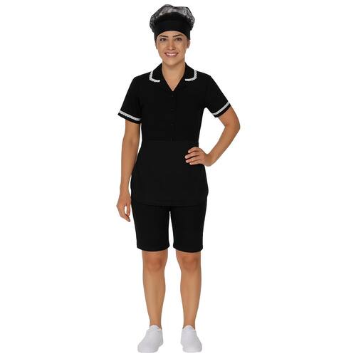 Esse uniforme operacional tem como objetivo proteger o vestido e deixar a trabalhadora mais elegante.