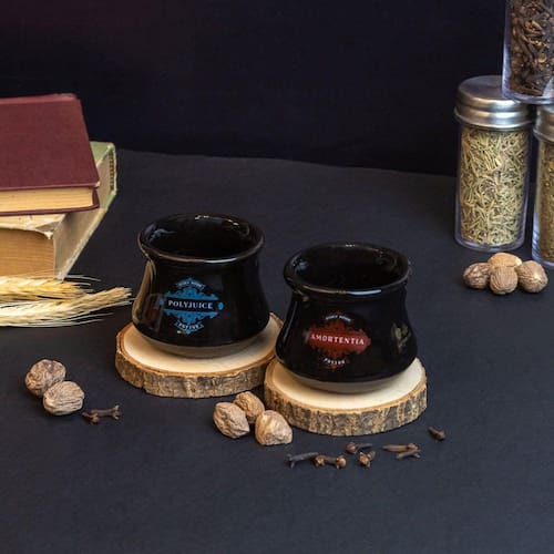 Sempre teve vontade de experimentar e usar as poções de Polissuco e Amortentia? Com o Conjunto Copinhos Caldeirões Shot Harry Potter você vai ter a chance! São 2 caldeirões mágicos com 100mls de capacidade para você se tornar o bruxo que sempre sonhou e parar de ser um trouxa para aquela pessoa especial com a poção do amor mais poderosa do universo.