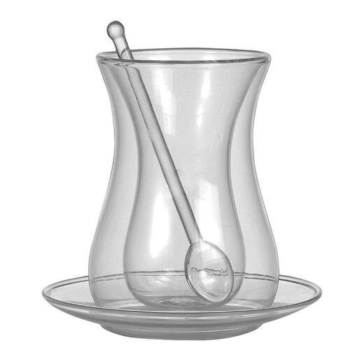 Conjunto Copo Silhueta Vidro Duplo, Colher e Pires Ah Natu