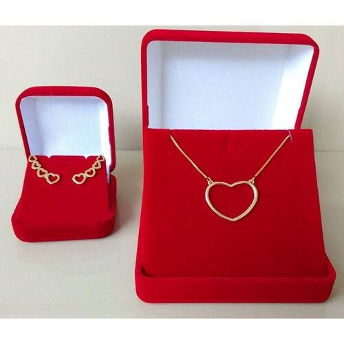 Conjunto Coração, Colar +Brinco Ear Cuff Banho de Ouro 18k