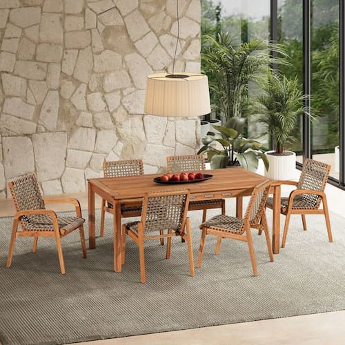 Composto por 2 cadeiras com braço, 4 cadeiras sem braço e 1 mesa de 180cm,o conjunto traço oferece conforto para os seus momentos de lazer, formando o ambiente ideal para desfrutar ocasiões de descontração ou confraternizações com seus amigos e familiares. São resistentes e com um design exclusivo. Produzidos com madeira de eucalipto reflorestado e trançado por artesãos da região de São Bento do Sul, Santa Catarina, com corda trançada chata de 2,2 cm, cor rami de polipropileno. Ideal para varandas, sacadas, espaço gourmet ou churrasqueiras e áreas de lazer cobertas, bem como para compor um ambiente aconchegante na sua sala de jantar. Medida da Mesa (A x L x P): 75cmx180cmx93cm Peso da Mesa: 35 kg Mesa suporta até: 50 kg Acabamento da Cadeira/Banco: Acetinado Acabamento da Mesa: Acetinado Ambiente Principal: Sala de Jantar Cadeira/Banco estofada: Não Cadeira/Banco suporta até: 120 kg codigo_ean: 7900288132628 Complexidade da Montagem: Baixa: pode ser montado por uma pessoa sozinha Configuração do Conjunto: Mesa com Cadeiras Cor: Stain Jatobá/Corda Rami Cor da Base: Bege Cor das Cadeiras: Bege Escuro Cor do Produto: Stain Jatobá/Corda Rami Cor do Tampo: Bege Cor Secundária: Bege De Canto (Canto Alemão): Não Design da Base: 4 Pés Escala de Brilho: Fosco Espessura do Tampo: 35 mm Estrutura do Assento: Madeira maciça com corda Formato do Tampo: Retangular Informações Complementares: O conjunto contem 1 mesa traço de 180cm, 2 cadeiras com braço 85x62x56 cada e 4 cadeiras sem braço 85x62x52 .Este produto pode ficar em ambientes cobertos como varandas, sacadas, espaços gourmet ou churrasqueiras e áreas de lazer cobertas.. Porém é recom Itens Inclusos: 1 Mesa, 6 Cadeiras, Kit Ferragens e Manual de Montagem Linha ou Coleção: Linha Traço Manual de Especificação Técnica: https://cdn2.madeiramadeira.com.br/atributo/casa-e-jardim-moveis/2803959-2932-17440266184861.pdf Manual de Montagem e Instalação: https://cdn2.madeiramadeira.com.br/atributo/casa-e-jardim-moveis/2803958-2932-17440266128394.pdf Marca: Casa e Jardim Móveis Material da Base da Mesa: Madeira Maciça Material da Estrutura da Cadeira: Madeira Maciça Material do Tampo: Madeira Maciça Material Principal das Cadeiras/Bancos: Madeira Maciça Medida da Base (A x L x P): 71,5cmx60cmx60cm Medida da Cadeira/Banco (A x L x P): 85cmx56cmx62cm Medida do Tampo (L x C x E): 180cmx93cmx3,5 Mesa Extensível: Não Necessita Montagem: Sim Origem do Produto: Nacional Peso da Cadeira/Banco: 7 kg Possui Apoio Para os Pés: Não Possui Suporte Giratório: Não Quantidade de Cadeiras: 6 Quantidade de Lugares: 06 Recomendações de Uso, Manutenção e Limpeza: Para uso em ambientes cobertos como varandas, sacadas, espaços gourmet ou churrasqueiras e áreas de lazer cobertas. Limpeza e cuidados: Passar um pano levemente umedecido com água, seguido de pano seco. Cuidados: Não utilizar produtos químicos ou abrasivos na limpeza. Evitar o contato com objetos cortantes. Não expor ao tempo , proteger do sol e da chuva. Sistema de Montagem: Parafusos Tipo de Madeira Maciça da Base da Mesa: Eucalipto Tipo de Madeira Maciça do Tampo: Eucalipto