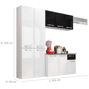 Características: Estrutura geral prod.: aço Quantidade de portas: 10 Quantidade de gavetas: 1 Quantidade de prateleiras/base: 8 Material pés: não acompanha Corrediças: telescópica Dobradiças: metálica 26 mm Puxadores: puxadores em ps metalizado Acompanha tampo: sim Material tampo: mdp ff granito onix Material das costas: HDF