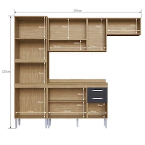 Conjunto modular Armário Aereo 70/120, Balcão 120, Torre Quente 65 com Tampo 120, confeccionado em MDP da linha Bélgica A3095.