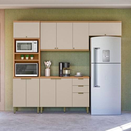 Nossa cozinha completa é a solução perfeita para quem busca praticidade e estilo. Com design moderno e funcional, ela oferece amplo espaço de armazenamento para todos os seus utensílios e alimentos. Confeccionada em MDP de alta qualidade, ela garante durabilidade e resistência. A combinação de cores e texturas cria um ambiente aconchegante e sofisticado