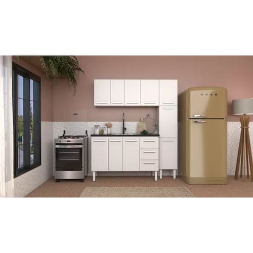Gabinete em aço Vênus Flat 134 Cozimax - Modelo 3 gavetasA linha de armários em aço para cozinha Vênus Flat, da Cozimax, é resistente, fabricado em aço eletrogalvanizado com garantia de 3 meses, protegido por pintura em pó eletrostática, possui portas com design moderno e cantos retos, puxadores em ABS com acabamento metalizado.Disponível nas cores:Portas: Branca / Gavetas: BrancaPortas: Branca / Gavetas: PretaDimensões do produto:Largura: 134 cmAltura: 91 cmProfundidade (interno): 50 cmCaracterísticas técnicas:Produto: GabineteModelo: Vênus FlatMarca: CozimaxQuantidade de portas: 3Quantidade de gavetas: 3Possui prateleira interna: SimPintura: Pó eletrostáticaEstrutura: Aço eletrogalvanizadoPuxadores: ABS com acabamento metalizadoPés: Polipropileno virgem e com regulagem de alturaDobradiças: Sistema de molas (padrão)Corrediças: Roldana com abertura parcialPossui acabamento interno nas portas: NãoPossui fundo: SimPossui passagem para sifão: SimPossui divisor de talheres: SimArmário Aéreo em aço Vênus Flat 134 CozimaxA linha de armários em aço para cozinha Vênus Flat, da Cozimax, é resistente, fabricado em aço eletrogalvanizado com garantia de 3 meses, protegido por pintura em pó eletrostática, possui portas com design moderno e cantos retos, puxadores em ABS com acabamento metalizado.Disponível na cor:BrancoDimensões do produto:Largura: 134 cmAltura: 54,7 cmProfundidade (interno): 32,2 cmCaracterísticas técnicas:Produto: Armário AéreoModelo: Vênus FlatMarca: CozimaxQuantidade de portas: 4Possui prateleira interna: SimPossui divisória interna: SimPintura: Pó eletrostáticaEstrutura: Aço eletrogalvanizadoPuxadores: ABS com acabamento metalizadoDobradiças: Sistema de molas (padrão)Possui acabamento interno nas portas: NãoPossui fundo: SimPaneleiro em aço Vênus Flat CozimaxA linha de armários em aço para cozinha Vênus Flat, da Cozimax, é resistente, fabricado em aço eletrogalvanizado com garantia de 3 meses, protegido por pintura em pó eletrostática, possui portas com design moderno e cantos retos, puxadores em ABS com acabamento metalizado.Disponível na cor:BrancoDimensões do produto:Largura: 38,1 cmAltura: 208 cmProfundidade (interno): 32,2 cmCaracterísticas técnicas:Produto: PaneleiroModelo: Vênus FlatMarca: CozimaxQuantidade de portas: 3Possui prateleira interna: SimPintura: Pó eletrostáticaEstrutura: Aço eletrogalvanizadoPuxadores: ABS com acabamento metalizadoPés: Polipropileno virgem e com regulagem de alturaDobradiças: Sistema de molas (padrão)Possui acabamento interno nas portas: NãoPossui fundo: SimGarantia: 3 Meses