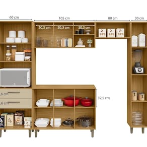 Transforme o coração da sua casa com a Cozinha Modulada Iris de 5 peças, a solução definitiva para quem busca sofisticação e funcionalidade em um só lugar. Desenvolvida com estrutura robusta em MDP de 1,2cm e 1,5cm, este conjunto oferece a durabilidade necessária para o uso cotidiano intenso. As corrediças telescópicas garantem uma abertura suave e silenciosa das gavetas, enquanto os puxadores em PVC agregam um toque moderno ao design clean. O amplo balcão de 118cm para pia (sem tampo) proporciona o espaço ideal para organizar seus utensílios e preparar refeições com total praticidade. Sua estrutura modular permite uma adaptação inteligente ao seu ambiente, otimizando cada centímetro disponível sem abrir mão da elegância. Com altura de 205cm e largura total de 265cm, ela preenche o espaço de forma harmônica e organizada. Garanta agora a sua Cozinha Iris e eleve o nível de organização e beleza da sua casa. Acabamento da Prateleira: Pintura Texturizada UV Escala de Brilho da Prateleira: Semi-Fosco Acabamento da Gaveta: Pintura Texturizada UV Escala de Brilho da Gaveta: Semi-Fosco Material do Puxador da Gaveta: PVC Acabamento da Porta: Pintura Texturizada UV Escala de Brilho da Porta: Semi-Fosco Material do Puxador da Porta: PVC Acabamento dos Pés: Pintura Acompanha Rodapé Decorativo: Não Acompanha Tampo: Não Altura dos Pés: 10 cm Altura Máxima dos Pés: 10.0000 Ambiente Principal: Cozinha Balcão Suporta Pia: Sim codigo_ean: 7900288336132 Complexidade da Montagem: Alta: deve ser montado por um montador especializado Cor: Carvalho Americano/Off White Cor do Produto: Carvalho Americano/Off White Cor Interna: Carvalho Americano Escala de Brilho: Semi-Fosco Espessura do Material da Estrutura: 12 mm Gaveta com Chave: Não Informações Complementares: Cozinha Completa Modular Itens Inclusos: 1 Cozinha Completa, Kit Ferragem e Manual de Montagem Linha ou Coleção: Íris Manual de Especificação Técnica: https://product-hub-prd.madeiramadeira.com.br/538427600/documents/a304501a-93cb-48f5-bb8f-5920d093deb63388411673617709029994024.pdf Manual de Montagem e Instalação: https://product-hub-prd.madeiramadeira.com.br/538427600/documents/371849ca-f029-4752-b35e-79dbe253fcae3388410673617709029833656.pdf Marca: Incorplac Material da Corrediça: Metálica Material da Dobradiça/Corrediça da Porta: Metálica Material da Gaveta: MDP Material da Porta: MDP Material da Prateleira: MDP Material do Fundo: MDP Material dos Pés: PVC Medida de cada item (A x L x P): COZINHA 205x265x28 BALCÃO 84x118x50 modular: Sim Montagem Flex: Sim Necessita Montagem: Sim O Balcão Acompanha Pia: Não Origem do Produto: Nacional Pés Reguláveis: Não Peso: 122 kg Peso Máximo por Gaveta: 5 kg Peso Máximo por Prateleira: 5 kg Possui Pés: 10 Possui Portas: Sim Possui Prateleiras: Sim Possui recorte para Cooktop: Não Possui Rodízio: Não Possui Vidro: Não Produto Montado: Sim Recomendações de Uso, Manutenção e Limpeza: Evite exposição direta ao sol, calor ou umidade excessiva. Limpe apenas com pano macio e levemente umedecido; não use produtos abrasivos, álcool ou solventes. Mantenha os móveis nivelados para evitar empenamento. Não sobrecarregue prateleiras, gavetas ou tampos com peso acima do indicado. Proteja superfícies contra objetos quentes, pontiagudos ou molhados. Evite arrastar os móveis; levante-os para movimentar. Realize a montagem com profissional qualificado e siga o manual de instruções. Em caso de contato com líquidos, seque imediatamente para evitar danos permanentes. Sapatas Niveladoras: Sim Sistema de Montagem: Acompanha Suporta Até (kg): 50 kg Tamanho Indicado da Pia: 120cm Tamanho Indicado do Tampo: 120cm Tipo de Corrediça da Gaveta: Metálica Telescópica Tipo de Dobradiça da Porta: Simples Tipo de Puxador da Gaveta: Externo Tipo de Puxador da Porta: Externo Marca: Não Informado