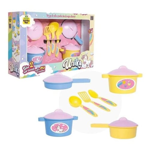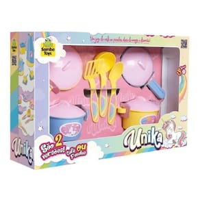 KIT PANELINHA E HORA DO CAFÉ UNICÓRNIO - SAMBA TOYS Divirta-se com suas panelinhas e brinque de criar deliciosas comidinhas! Um jogo de café e panelas cheio de magia e diversão! A criançada vai amar.
