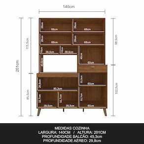 Medidas da Cozinha Montada: A:201cm |L:140cm |P:45,3cm