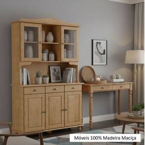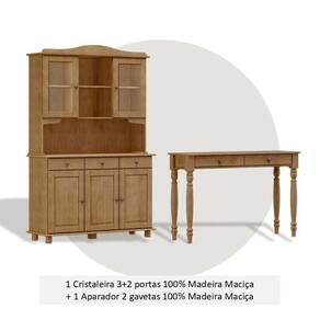 Transforme seu ambiente com o charme da madeira maciça na cor Freijó! A cristaleira possui 5 portas (2 com vidro), ideal para exibir louças e objetos com elegância. O aparador, com 2 gavetas, é perfeito para complementar halls e salas com estilo rústico refinado. Acabamento acetinado, puxadores metálicos e pés torneados garantem sofisticação e durabilidade. Um combo que une beleza, funcionalidade e presença marcante. Acabamento: Pintura UV Altura do Conjunto: 197 cm Ambiente: null Ambiente Principal: Sala de Estar Cor: Freijó Informação Complementar: 1x Cristaleira Rústica 100% Madeira Maciça 5 Portas para sala de Jantar Linha Rubi Freijó Largura: 128,4 cm Altura: 197 cm Peso: 52,84 kg Profundidade: 43 cm Necessita Montagem: Sim