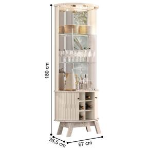 A Cristaleira é feita em MDP 12/15mm. Contém 4 portas de vidro e deslizantes, luminárias em LED e espelhos, 2 prateleiras de vidro 6mm.