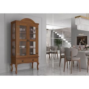 Inspirada no estilo francês da época de Luís XV, a Cristaleira Luis XV é a definição de sofisticação. Com suas curvas suaves, detalhes esculpidos e pés cabriolé, esta cristaleira confere uma aura de requinte a qualquer ambiente. Além disso, suas duas portas de vidro temperado e três prateleiras oferecem um espaço versátil para exibir sua coleção de louças, cristais e objetos de decoração.
