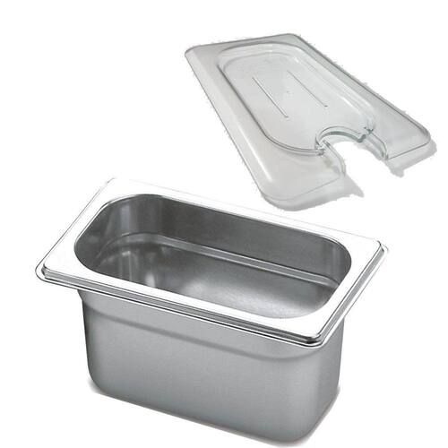 Conjunto Contém: 1 Cuba de Inox 1/9x100 e 1 Tampa de Policarbonato de 1/9 Com Abertura para Colher ou Concha