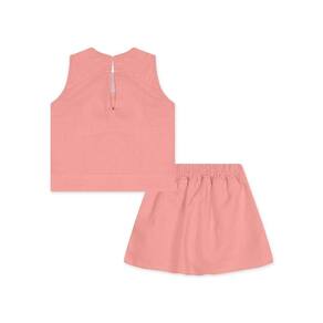 A elegância e leveza da estação se traduzem em nosso Conjunto Lilica Ripilica! Confeccionado em tecido trabalhado em algodão, a peça garante a combinação perfeita entre conforto e charme para os primeiros passos das meninas. A blusa regata conta com uma abertura em gota nas costas com fechamento em botão e a saia possui elástico no cós, além de detalhes em pregas para dar mais volume e movimento ao look e short interno em meia malha stretch, garantindo mais conforto para sua pequena. O conjunto também traz a assinatura da marca em forma de etiqueta metalizada, ideal para dar aquele toque especial ao visual. Aposte nesse must-have para um visual incrível para sua menina!