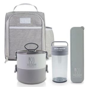 Conjunto da Linha Joy com Bolsa térmica, Porta talher, Pote de Marmita 2 Andares e Garrafa 430ml Cinza - Kit da linha Joy! Tenha uma vida mais saudável com estilo!