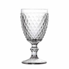 Conjunto de 06 Copos de Vidro 325ml Taça Bico de Abacaxi Conjunto de 06 Copos de Vidro 325ml Taça Bico de Abacaxi ===================================== Este conjunto elegante é composto por 6 taças produzidas em vidro de alta qualidade, com acabamento em relevo no clássico estilo bico de abacaxi.