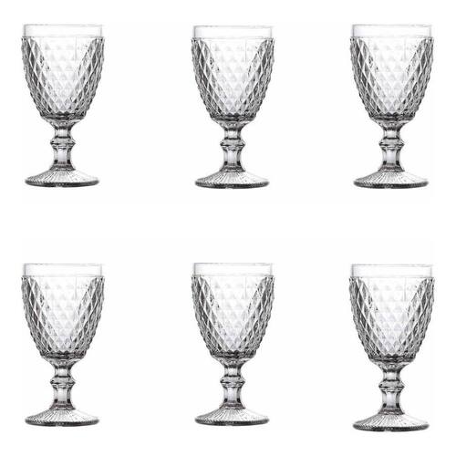 Conjunto com 6 taças de vidro de alta qualidade Acabamento em relevo no clássico estilo bico de abacaxi Capacidade de 325ml, ideal para água, sucos, drinks ou vinhos Design retrô com detalhes em alto-relevo, perfeito para qualquer ocasião Transparência que valoriza a apresentação das bebidas Espessura reforçada para maior resistência e durabilidade Base firme e estável, garantindo segurança durante o uso Fácil de limpar e compatível com lava-louças