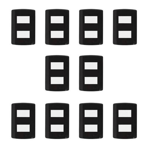 Com design sofisticado esse conjunto é utilizado para o acionamento manual da iluminação (liga/desliga) em diversos ambientes residenciais, comerciais ou industriais. As placas e teclas são produzidos em ABS e com tratamento anti-UV garantindo a cor e o brilho por muito mais tempo. Altura do Conjunto: 12.5 cm Ambiente: null Ambiente Principal: Sala de Estar Cor: Preto/Branco Cor Predominante: Preto Garantia do Fornecedor: 5 anos Informação Complementar: 10x Interruptor de 2 Teclas Simples, Modular, com Placa 4x2 e Suporte Preto/Branco Largura: 8.5 Altura: 12.5 Peso: 0.06900000000000001