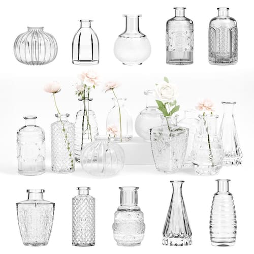Torne qualquer ocasião especial com os vasos de flores Gather & Bloom Creations para centros de mesa — uma impressionante variedade de designs que oferecem funcionalidade e beleza, preparando o palco para uma decoração memorável. Este conjunto de vasos de vidro apresenta 10 vasos de botões exclusivos, incluindo estilos como o vaso floral em forma de abóbora para peça central, vaso de botão curto com corte de diamante, elegante vaso alto afunilado a granel e o vaso de casamento da colmeia. Misture e combine esses vasos de flores a granel ao seu gosto, coloque-os em sua mesa de café, mesa de escritório ou prateleiras e veja como eles melhoram o ambiente sem esforço. A diversidade de formas e tamanhos permite que você personalize criativamente sua decoração, refletindo seu estilo e humor. Depois de colocar esses pequenos vasos de flores no local escolhido, você pode personalizar ainda mais cada exibição adicionando flores vibrantes, luzes cintilantes, seu difusor de perfume favorito, pedras decorativas ou até mesmo velas. Você não precisa se preocupar com estabilidade ou durabilidade; cada pequeno vaso vintage é projetado com um fundo grosso e pesado que garante que ele permaneça na vertical e um vidro durável e cristalino que resiste a lascas. Tenha certeza de que, ao abrir seu pacote de vasos, você encontrará tudo em perfeitas condições, graças à nossa embalagem premium. Esta atenção meticulosa aos detalhes na embalagem torna nosso conjunto de vasos de flores um presente ideal para amigos ou familiares comemorando inaugurações de casa, aniversários ou qualquer ocasião especial. Cada unboxing certamente encantará, tornando-o um presente inesquecível que combina praticidade com estilo incomparável. A Gather & Bloom Creations é mais do que apenas uma marca; celebra arte, beleza e comunidade. É um testemunho do fato de que a peça central certa pode não apenas elevar uma configuração, mas também enriquecer os momentos compartilhados em torno dela. Para quem quer adicionar um toque de elegância à sua vida, a Gather & Bloom oferece a mistura perfeita de estilo e qualidade. Comece a decorar como um profissional clicando em "Adicionar ao carrinho" - Renove a estética da sua casa com os 10 vasos de vidro pequenos da Gather & Bloom Creations para centros de mesa. Experimente colocar mini vasos de flores em pares para um charme pitoresco, use um trio de vasos transparentes para um visual equilibrado ou organize todos em vasos a granel para uma configuração verdadeiramente luxuosa - Chegada segura e elegante é o que você pode esperar ao escolher este conjunto de vasos de botões variados. Se você está planejando um casamento, aniversário, inauguração de casa ou qualquer ocasião especial, nossos pequenos vasos de flores para mesas são o presente perfeito que certamente encantará seu destinatário - Potencial de decoração ilimitado: nosso vaso de vidro transparente funciona muito bem para segurar velas, exibir luzes de cordas, armazenar pedras decorativas ou apoiar seu difusor. Os usos abrangentes deste conjunto de vasos os tornam uma ferramenta de decoração vital para qualquer casa - Aproveite a elegância cristalina dos seus vasos de festa. Quando a luz atinge cada pequeno vaso vintage, ela brilha brilhantemente! Estes pequenos vasos para flores são feitos com vidro forte que resiste a batidas e batidas, garantindo que durem por muitas celebrações - Adicione uma impressionante peça central à sua mesa de jantar, mesa de escritório e prateleiras colocando estes vasos de flores compactos e transparentes. Misture, combine e observe como eles transformam os pontos do dia a dia em um ponto focal cativante. Para um conjunto de vasos de vidro atemporal, clique em "Adicionar ao carrinho" - Decorações de mesa centrais perfeitas para casamentos, jantares e ocasiões especiais, adicionando um pequeno toque de charme e sofisticação a qualquer configuração de mesa. Estes são mini vasos feitos para pequenos arranjos florais. Verifique as dimensões nas fotos para garantir que atendam às suas necessidades!