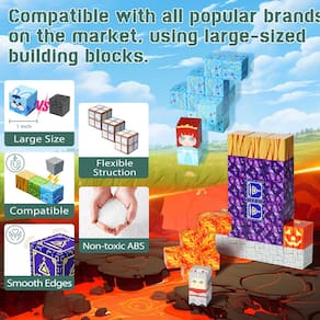 Build Mine Magnet World Conjunto de selva com portal mágico magnético - ?Construa o mundo do ímã – conjunto de selva de portal vulcânico?Construa seu próprio mundo com nossos blocos de construção magnéticos de 100 peças! (Se você precisar fazer uma ótima capa, então você terá mais de um conjunto! )Experimente uma emocionante aventura no portal! Explore dois mundos completamente diferentes: de um lado há uma floresta vibrante com princesas e coelhos na grama; do outro lado, há um príncipe e o Pequeno Dragão de Fogo em pé em um rio de lava e castelo. As crianças podem usar sua imaginação para criar suas próprias ideias para explorar a floresta mágica com um cavaleiro corajoso e uma princesa elegante! - ?Compatível com todas as marcas populares no mercado? (2,5 cm) Nossos blocos de construção magnéticos são totalmente compatíveis com as principais marcas, permitindo que você expanda sua coleção adicionando mais blocos de construção. Mais cubos, mais diversão! se são blocos de construção de cor sólida ou conjuntos mundiais magnéticos de construção. Eles podem ser perfeitamente combinados. Seja para crianças ou adultos, seja como um brinquedo, auxiliar de ensino ou decoração, escolher nossos blocos de construção magnéticos de lava da selva pode permitir que sua criatividade se estenda infinitamente. - ?Magnético seguro e forte?Os blocos são feitos de plástico ABS premium não tóxico que é seguro para as crianças brincarem. Nosso kit de cubo magnético é projetado para ser elegante e seguro, permitindo que você expanda sua coleção adicionando mais blocos de construção. Mais cubos, mais diversão! Embora a maioria dos conjuntos de blocos de construção magnéticos contenha apenas 6 ímãs, nossos blocos de construção são projetados com 8 ímãs, tornando-os mais fortes, mais estáveis e mais flexíveis. As bordas seladas e a estrutura durável evitam que os ímãs quebrem ou sejam engolidos. Desta vez, oferece a você uma forma mais segura e confiável. - ?A alegria depois de concluir um trabalho!?Você está frustrado por não poder reproduzi-los com um conjunto de designs de grande escala mostrados em nossas páginas de detalhes? Nosso manual de instruções revisado vem com os exemplos, garantindo que a experiência do seu filho seja realmente satisfatória. As crianças podem replicar cada modelo com confiança. Eles se sentirão animados quando perceberem que construíram exatamente a mesma peça do manual de instruções, despertando uma sensação de realização e orgulho. Deixe a diversão começar! - Presente de brinquedo sensorial STEM Montessori: ao contrário de cubos monótonos de cor sólida, nossos blocos de construção magnéticos são tratados com tecnologia UV para dar a eles padrões vívidos e realistas, tornando-os vivos. Eles são ótimos para brincadeiras sensoriais e incentivam as crianças a liberar sua imaginação. Também é um presente perfeito para crianças de todas as idades, blocos de construção magnéticos são sua melhor escolha. Pode trazer alegria para as crianças! Seja um aniversário, feriado ou recompensa, é um presente de brinquedo perfeito!