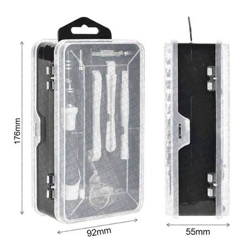 Equipado com uma caixa de armazenamento profissional: o kit de reparação é equipado com uma caixa de armazenamento feito de material de pp e é resistente ao choque.