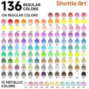 Com o conjunto de 136 lápis de cor Shuttle Art, você terá à disposição 136 cores vibrantes e únicas, incluindo 12 cores metálicas, perfeitas para crianças, adultos, artistas e amantes de cores utilizarem em livros de colorir, desenhos, esboços e outras criações artísticas. Suas minas macias escrevem suavemente e proporcionam cores vivas, fáceis de misturar, sobrepor e sombrear. O núcleo da mina de alta qualidade e espessura evita quebras durante o uso diário e ao apontar, garantindo durabilidade. Cada lápis é numerado e possui o nome da cor para fácil identificação, acompanhado por um gráfico de cores DIY em branco, permitindo que você crie suas próprias amostras de cores para uma seleção rápida, ideal para artistas, designers e amantes de cores. Todos os lápis de cor são armazenados em quatro bandejas individuais e embalados em uma caixa resistente de PET, que oferece amplo espaço para armazenamento e organização. Além disso, os 136 lápis de arte estão pré-afiados, prontos para uso imediato, poupando seu tempo de preparação. Atóxicos, livres de ácido, seguros e adequados para todas as idades.