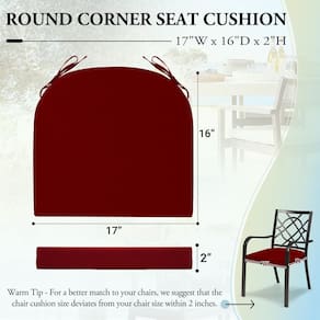 Almofadas para cadeira ao ar livre - Conjunto de 2 almofadas para cadeira externa – Wellsin almofada de canto redondo para área externa mede 43 cm L x 40 cm P x 5 cm A, adequada para a maioria das cadeiras de tamanho padrão, pode ser ideal para almofadas de assento ao ar livre para móveis de pátio - Fique no lugar com uso frequente: há 2 tiras anexadas em cada lado das almofadas de cadeira de pátio que podem ser presas à parte de trás das cadeiras, para garantir que suas almofadas para móveis de exterior não se movam e não reajustem mais as almofadas do assento da sua cadeira o tempo todo - Espuma de alta densidade: as almofadas para móveis de exterior são preenchidas com esponja de qualidade de 5 cm de espessura que oferece suporte extra e conforto ao seu corpo para tirar a pressão na parte inferior, reduzindo a dor na parte inferior das costas, quadris e nervo ciático - TECIDO DE POLIÉSTER DURÁVEL - Nossas almofadas para móveis de exterior adotam tecido de poliéster de alta densidade que é resistente aos raios UV, resistente à água e ao desbotamento. Além disso, estas almofadas de pátio ao ar livre são super fáceis de manter e limpar, basta limpar suavemente com um pano úmido e esperar para secar - Amplamente utilizado para uso externo/interno – as almofadas de cadeira Wellsin são projetadas em cores diferentes para se adequar a todas as decorações ou estilos, também podem transformar suas cadeiras rígidas em uma peça de mobiliário elegante e confortável, perfeita para pátio, varanda, jardim e uso interno