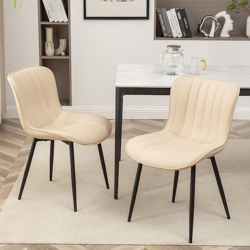 - Cadeira de jantar confortável: a cadeira de jantar moderna é acolchoada com espuma virgem de alta densidade para excelente suavidade. O tecido de couro de alta qualidade é respirável e rápido de limpar simplesmente com limpador de couro ou um pano úmido. Esta cadeira de jantar de couro oferece uma experiência de jantar ultraconfortável e elegante.