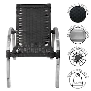 Conjunto de 2 Cadeiras para Área Externa Garden em Alumínio Polido - Preto