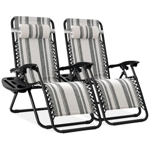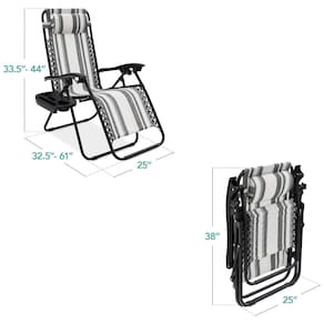 O Sistema de Reclinação com Travamento desliza suavemente para uma posição ergonômica de gravidade zero, com cordas elásticas removíveis que se ajustam imediatamente ao peso do seu corpo. Design portátil e leve que facilita transportar para o parque, praia ou próximo evento esportivo. Bandeja removível com dois porta-copos, porta-celular e porta-tablet para você aproveitar suas bebidas ou dispositivos eletrônicos favoritos. Construção confiável com capacidade de peso de até 113kg e tecido textilene de baixo desgaste para maior durabilidade. Inclui encostos removíveis e ajustáveis para um conforto extra. Dimensões abertas: 82,5cm-155cm comprimento x 63,5cm largura x 85cm-112cm altura. Dimensões dobradas: 96,5cm comprimento x 63,5cm largura x 15cm altura. Peso suportado de até 113kg.