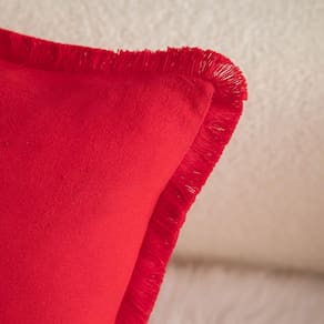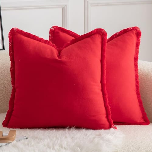 Mandioo Conjunto de 2 capas de almofada de algodão neutro com franjas decorativas boho fazenda, fronhas aconchegantes com borlas para sofá, quarto, sala de estar, decoração de casa, 45 x 45 cm, vermelho