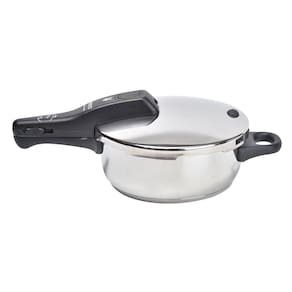 Este conjunto de panelas de pressão da WMF é composto por duas panelas, sendo uma de 4,5 litros e a outra de 3 litros, e uma tampa que se encaixa em ambas as panelas. Este conjunto é ideal para preparar feijão, carnes, legumes ou até mesmo fazer sopas, podendo escolher a melhor capacidade de acordo com a sua necessidade. Possui o exclusivo sistema composto por 5 válvulas e trava no cabo que garantem maior segurança.Produzida em aço inox Cromargan, material exclusivo da marca, que oferece maior resistência a riscos, mesmo após o uso prolongado, além de durabilidade e facilidade para higienizar. Ainda conta com sistema de funcionamento silencioso, e tecnologia Transtherm, que proporciona melhor distribuição de calor, reduzindo o tempo de preparo em até 70%. Projetada para utilizar em todos os tipos de fogões, incluindo indução.Ficha técnica:- Código: 4080011412- Marca: WMF- Conteúdo da Embalagem: 2 Panelas-Especificações do produto:Pode ser utilizado em todas as fontes de calor, incluindo a indução- Material: Aço inox- Capacidade: 1 Panela de 4,5 litros e 1 panela de 3 litros- Peso: 5,277kg- Dimensões: 26cm x 27cm x 41,5m (AxLxP)- Garantia: 5 Anos