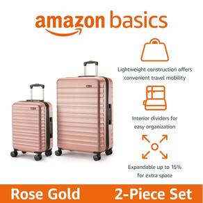 Amazon Basics Conjunto de bagagem de 2 peças (53 cm, 76 cm), malas rígidas com rodas, expansível para até 25% mais espaço, com superfície resistente a arranhões, quatro rodas multidirecionais, ouro
