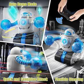 NOTA: quando o robô faz um som como uma falha ou o piloto é ejetado, o piloto precisa ser reinstalado e operado com o controle remoto novamente. - ?Conjunto de brinquedos de robôs de batalha de controle remoto com 4 baterias recarregáveis?Os robôs de duelo vêm com 4 baterias recarregáveis para manter as crianças experimentando diversão e emoção contínuas e ininterruptas. Com as 2 baterias recarregáveis extras, você não precisa esperar por uma carga - ?Luz LED piscante e 3 músicas dinâmicas opcionais?Os brinquedos de combate de robô de controle remoto apresentam efeitos de iluminação legais e 3 músicas divertidas opcionais (também um modo mudo como você gosta) para mergulhar as crianças na ação de batalha do robô. Com cada golpe, torna-se uma experiência imersiva, que mantém as crianças entretidas durante os jogos da família e ficam longe da tela - ?Fácil de operar, responsivo e movimento suave?Ligue o interruptor de um robô e, em seguida, ligue o interruptor de um controle remoto para iniciar a conexão. Após a conexão bem-sucedida, ligue o outro robô e o controle remoto um por um para garantir a recepção de sinais de 2,4 GHz. Mire o peito do seu robô rival e acerte-o para lançar o piloto no ar, ganhe o jogo. Os robôs de boxe possuem controle remoto sem atraso que podem girar 360 graus, os jogadores podem controlar o robô para atacar de qualquer ângulo e tornar as batalhas mais desafiadoras, elevando a jogabilidade divertida e interativa - ?Modo solo e interativo para 2 jogadores?Treinamento no modo solo, a criança ativa o modo de demonstração automática de um robô e, em seguida, controle remoto o outro robô para atacar e defender. Com um controle remoto sem fio sensível, o conjunto de combate de robô RC oferece várias maneiras de jogar e oferece uma experiência multijogador emocionante - ?Grande presente para crianças?Presentes legais de Natal e aniversário para crianças e adultos que amam jogos de batalha de rivais mecânicos RC. Ótimos brinquedos de batalha para meninos e meninas, perfeitos para promover duelos amigáveis entre crianças, familiares e amigos. Se houver algum problema (peças ausentes ou quebradas), informe-nos e faremos uma solução satisfatória especial para você