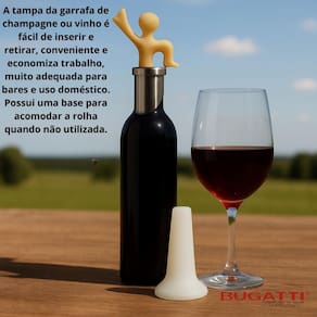 O jogo de rolhas para vinho ou champagne em formato de homem da Bugatti é feita de silicone de qualidade alimentar, pode entrar em contato diretamente com os alimentos, estilosa e durável.